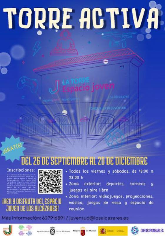 Registration open for 4th quarter Torre Activa programme for young teenagers in Los AlcázaresFree activities for 12- to 16-year-olds in a safe environment in Los Alcázares The Town Hall department of Youth has announced the programme of free activities for 12-to 16-year-olds for the last three months of 2025, with the “Torre Activa.. 23/09/2025